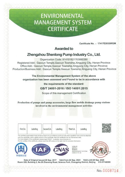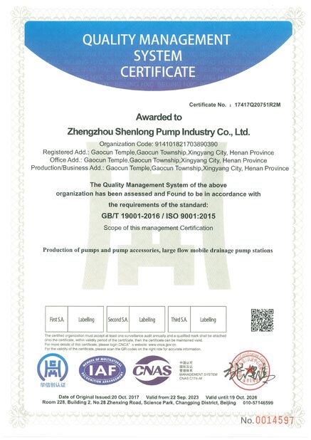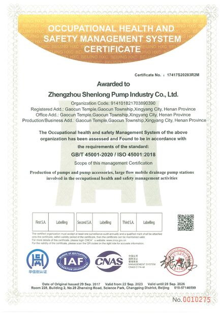 | 範囲/範囲: | Production ofpumps and pump accessories,large flowmobile drainage pump stations involved in the occupational health and safety management activities |